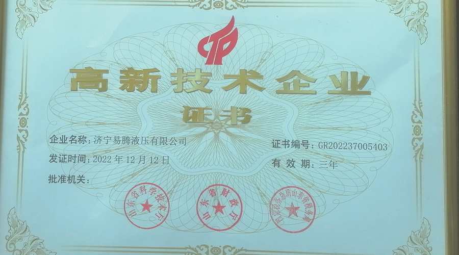 济宁易腾液压有限公司坐落于山东省济宁市高新技术开发区开源路9号,注册资金5500万元,是一家专业从事液压元器件及周边产品的研发、制造、销售的公司,拥有完善的生产管理体系和质量控制体系。公司产品广泛用于工程机械、农业机械、渔业机械、注塑机械、矿山机械、冶金机械、石油机械、非开挖机械及军事工程等。公司产品销往全国30个省、市、自治区,公司拥有货物及技术进出口权,产品远销美国,西班牙、韩国、意大利、土耳其、加拿大、泰国、马来西亚、越南等十几个国家和地区。